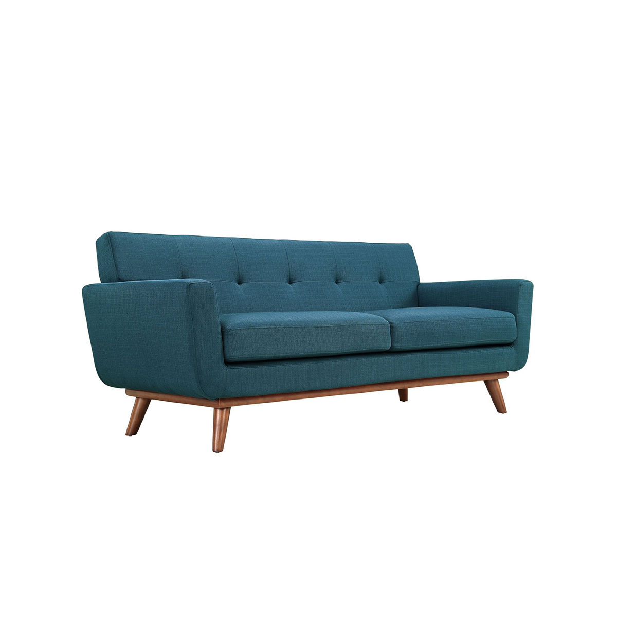 Navy Leather Wood Sofa